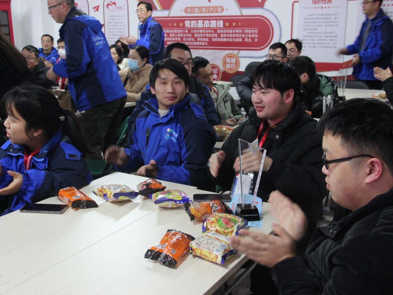 活动开始,主持人宣布了获得十二月份月度工作明星的小伙伴,德远助残中心廖总为他们颁发奖杯和奖金,以此表彰他们的优秀表现。这一时刻,现场掌声雷动,为他们的成功和付出送上最热烈的祝贺。